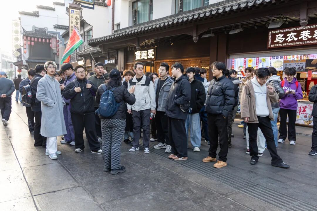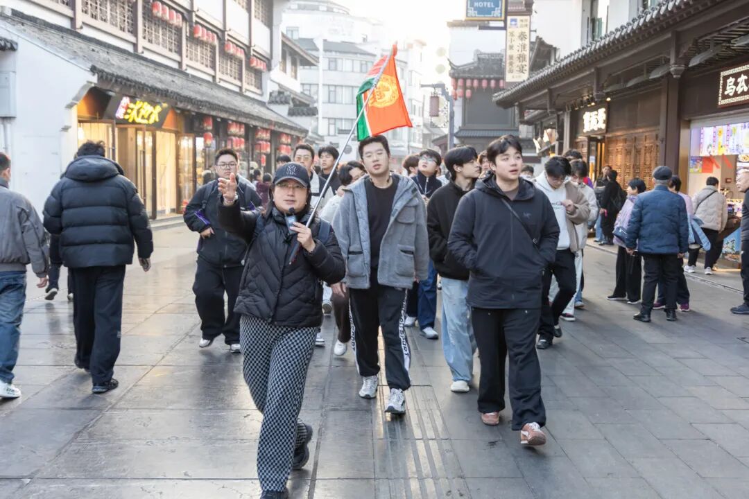 秦淮河畔文脉流芳,研学团学子们驻足夫子庙历史文化街区、江南贡院与中国科举博物馆门外,开启了一场与中国古代文教制度的隔空对话。沿街江南风味浓郁,白墙黛瓦间飘来软糯吴语,市井烟火与千年文脉在此相融。学子们在古今对望中,于心底播下辨识文化基因、守正创新的种子。