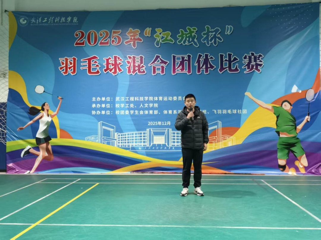 12月2日至3日,武汉工程科技学院2025年“江城杯”学生羽毛球混合团体比赛在校羽毛球馆成功举办。本次赛事由校体育运动委员会主办,学生工作处与人文学院联合承办,校团委学生会体育部、体育系羽毛球专项班及飞羽羽毛球社团共同协办,吸引了全校六大学院代表队、近300名羽毛球爱好者参与,展现了我校学子昂扬向上的精神风貌与团结拼搏的体育精神。