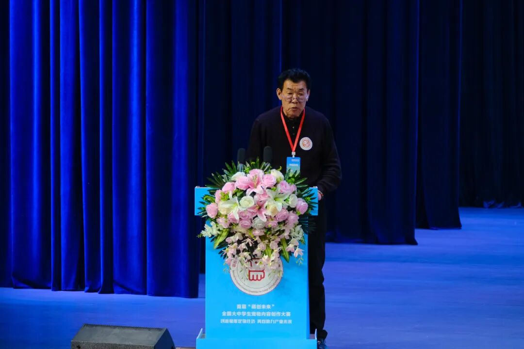 江夏区农业农村局农业产业化服务中心党委委员王德才致辞。他表示,江夏区高度重视宠物经济发展,正依托本地科教资源推进宠物诊疗体系规范化、专业化建设,目前已拥有26家宠物医疗机构,并积极推动宠物产业与社会责任深度融合。他指出,本届大赛聚焦宠物内容创作,设立多维度赛道,是一次将青年创意与宠物主题相结合的富有远见的探索。他期望参赛学生充分发挥才智,创作出有温度、有深度、有广度的优秀作品,并欢迎优秀创作者未来将目光投向乡村,为乡村振兴注入青春创意。