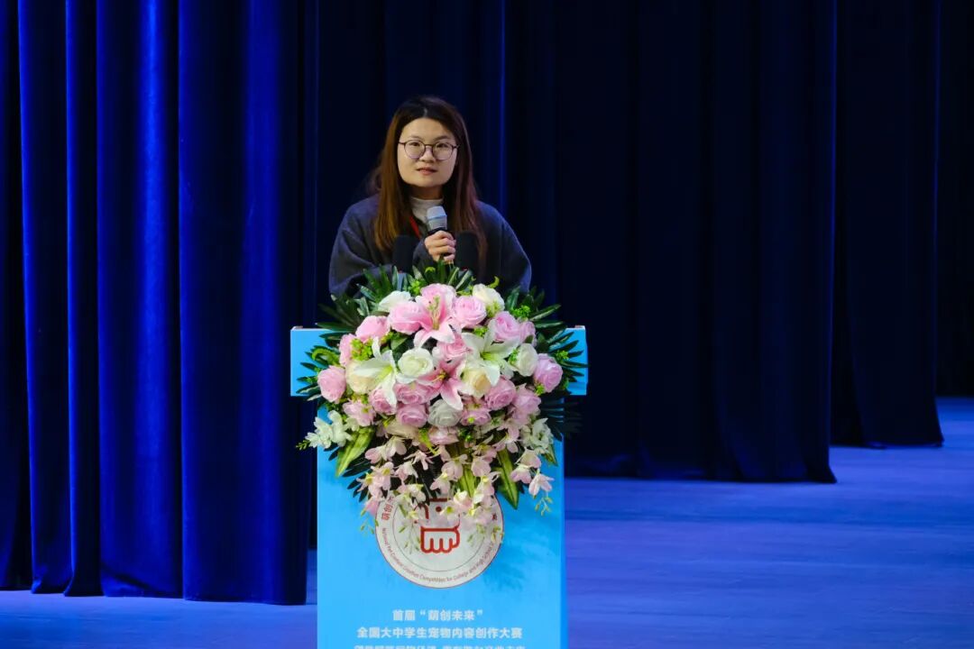 中誉宠食市场部经理肖万隆发言。他指出,当前宠物角色已转变为家人的情感认同,行业正处在一个“充满温度、也充满无限可能的黄金时代”。他表示,中誉宠食作为深耕宠物食品领域的企业,深刻理解创新对行业发展的重要性,始终致力于推动“产业链与创新链的深度融合”。他提到,企业不仅关注提供科学营养的产品,更着眼于“人与宠物共同的美好生活”,要实现这份行业“美好”的未来图景,需要新一代青年的创造力。他指出:“新的思想,或许就是明天行业的启发;新的创意,很可能就是未来市场的风向。”他期待与青年一代展开合作,共同推动宠物行业的创新与发展。