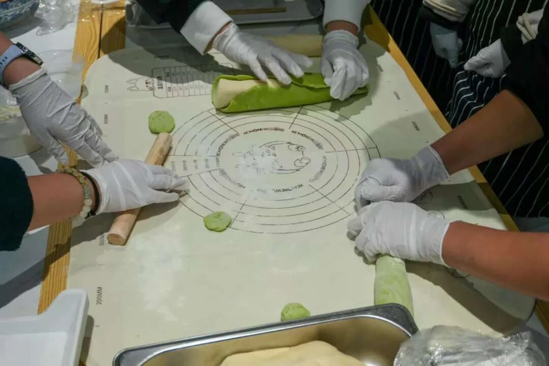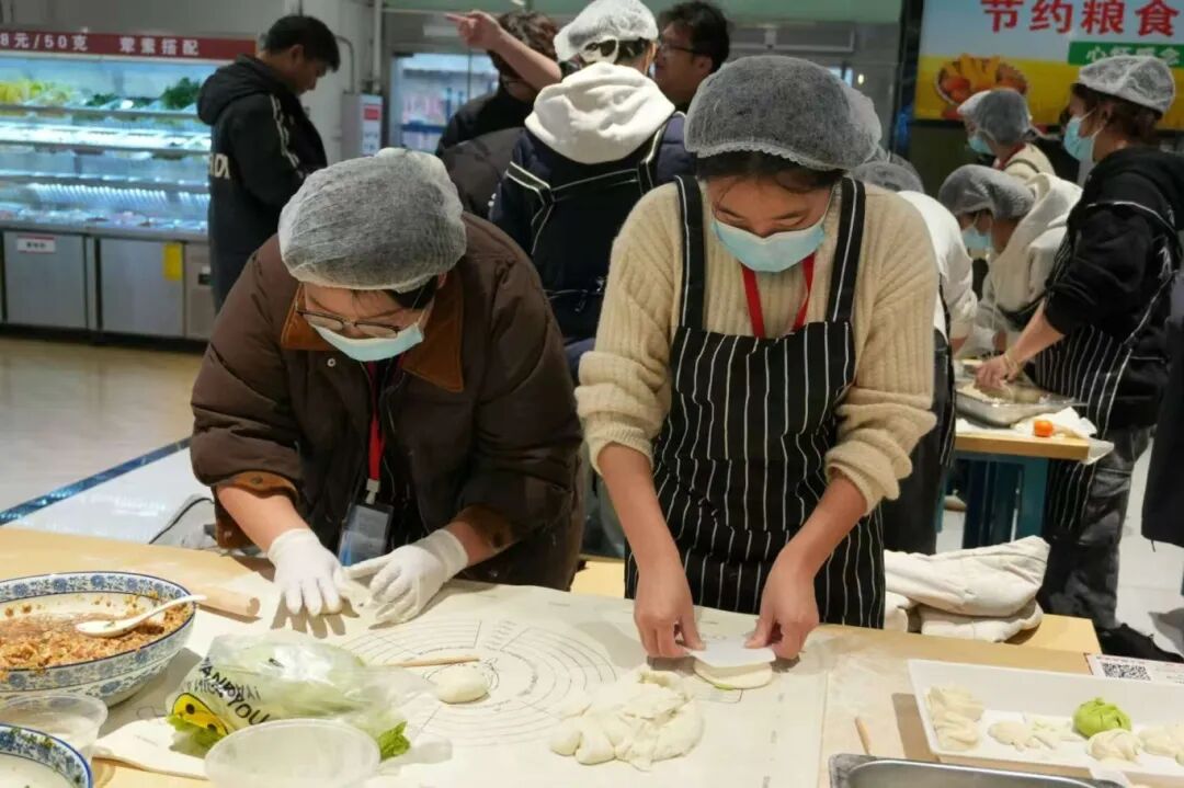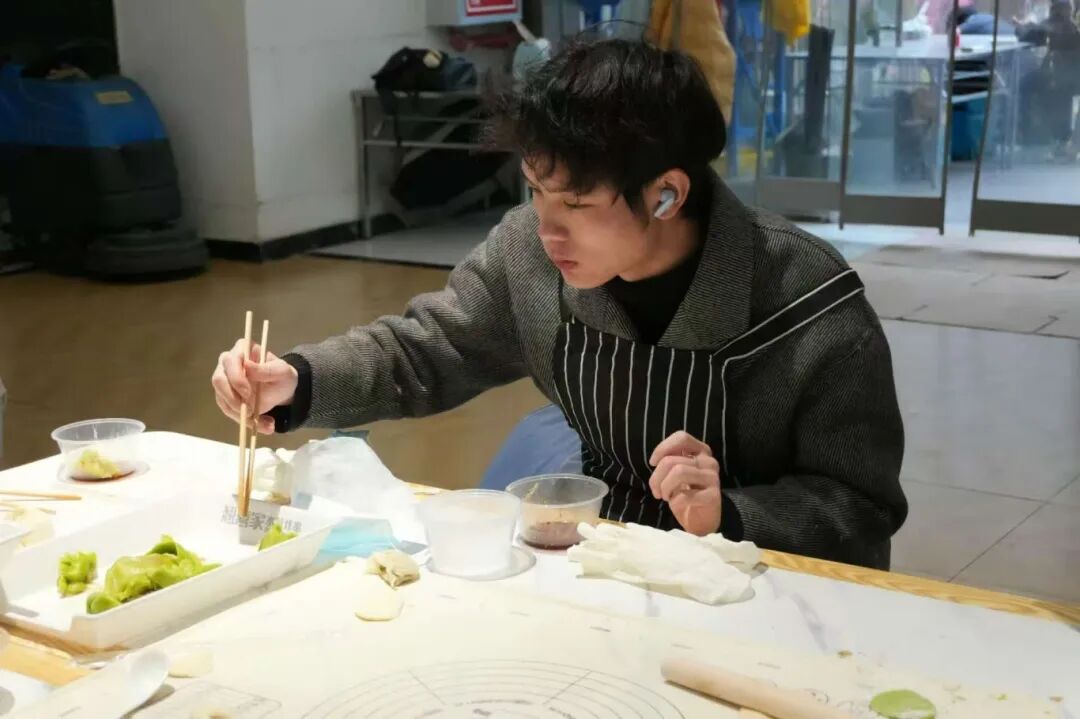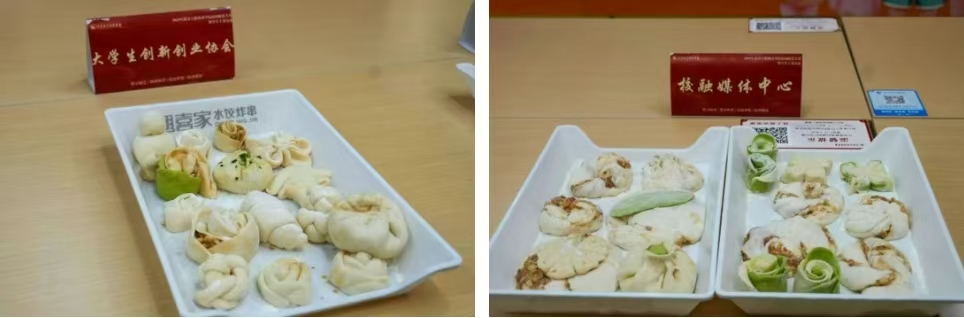 比赛现场精彩纷呈,暖意融融。同学们揉捏塑形、默契配合,将普通面团化为形态各异的饺子、花馍,指尖翻飞间尽显青春创意。