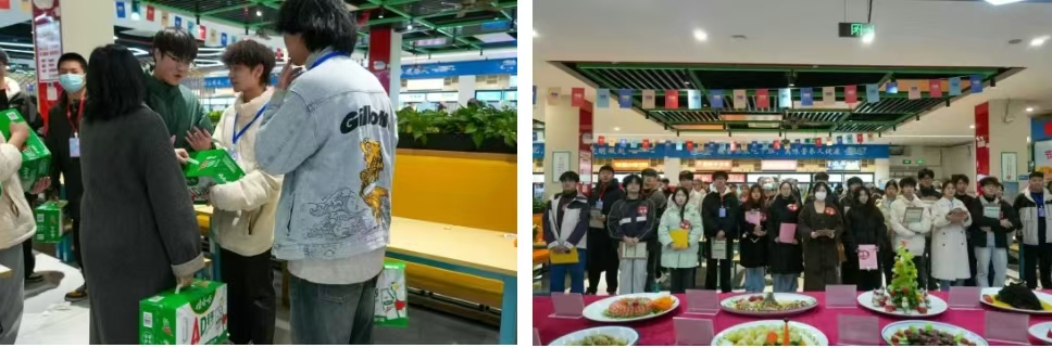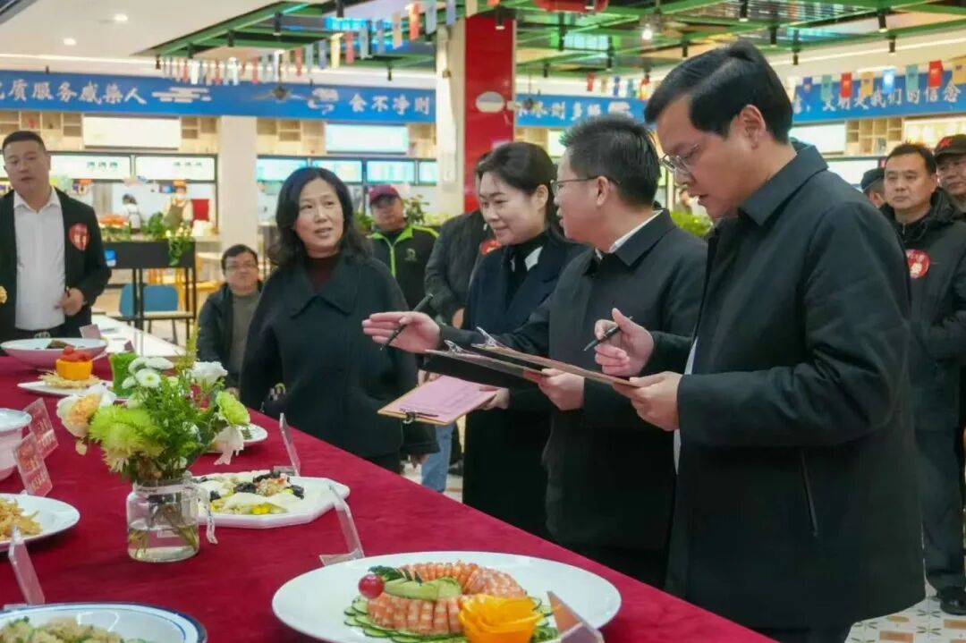 活动设置学生组与食堂组双赛道。学生组由校团委学生会、学生社团联合会、长江国际公益协会、大学生创新创业协会、校融媒体中心、校园维护学生自律委员会组成六支学生代表队伍,在限定时间内协作完成饺子、花馍等面食制作。食堂组则为学校三大食堂代表队,精心烹制出松鼠桂鱼、蒜香排骨、东坡肉、翡翠白玉卷、金汤赛熊掌等特色菜,更有圣诞快乐、牛气冲天、大鹏展翅等寓意吉祥的创意菜,二十四道菜品涵盖川湘粤等多地风味,锅铲起落间沉淀着后厨工作人员的岁月匠心。