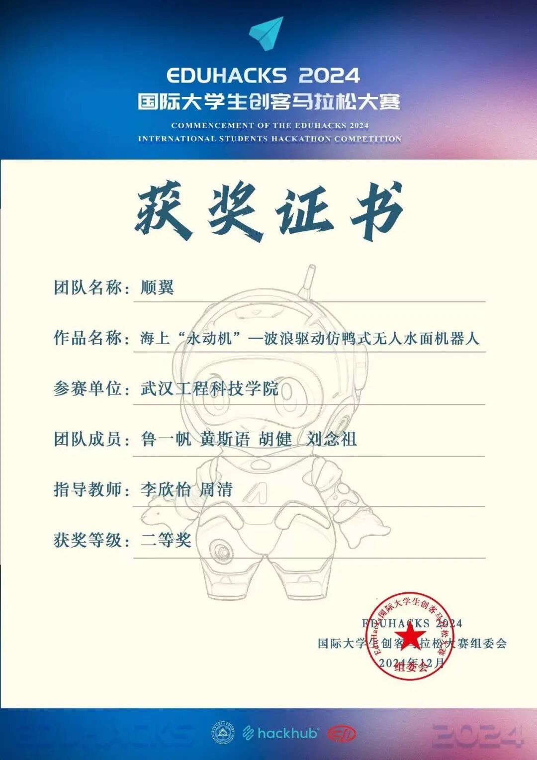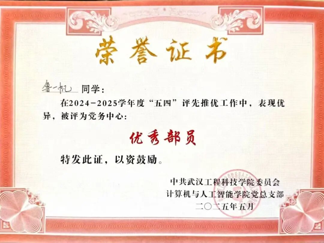 鲁一帆寄语学弟学妹:“一要始终不忘初心,参加竞赛旨在以赛促学,在攻坚克难中提升自我,而非仅为一纸证书。唯有专注成长,方能真正有所收获。二要坚持脚踏实地,走好眼前每一步,不必过度焦虑未来。”