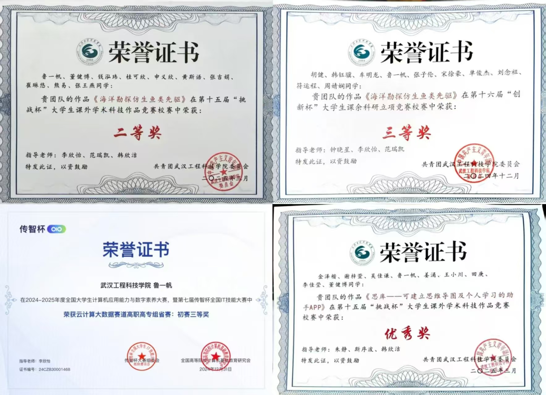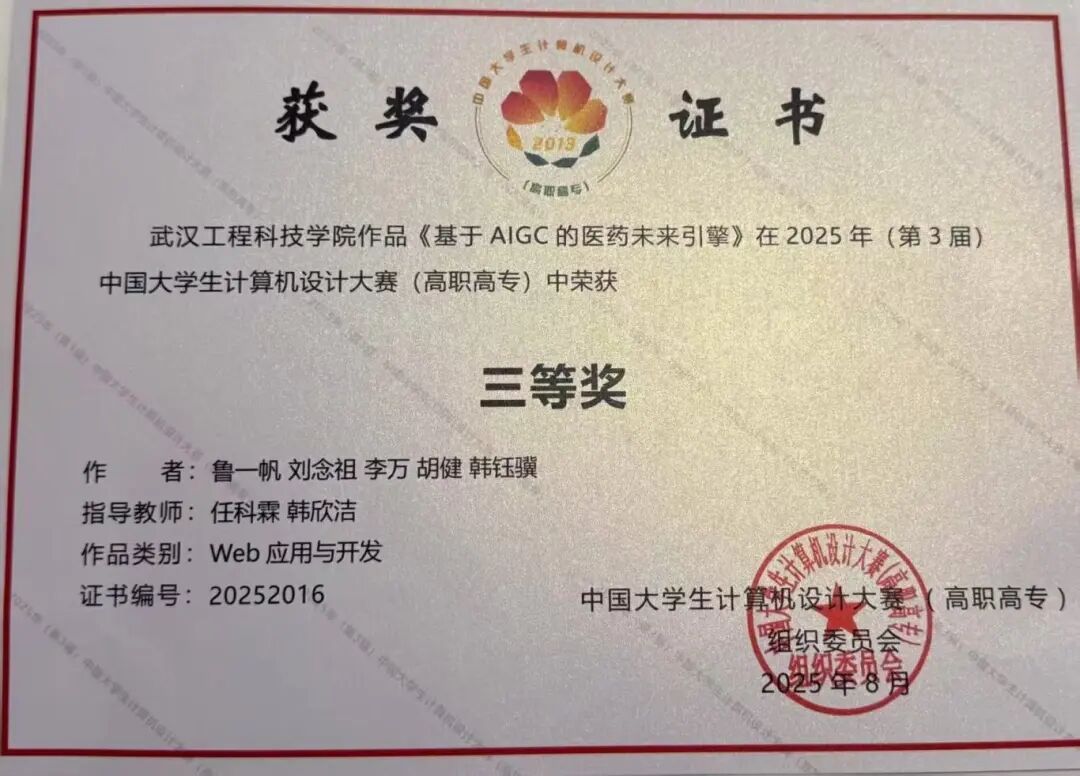 作为计算机网络技术专业的学生,鲁一帆的履历写满了“行动力”:2024年12月获EduHacks国际大学生创客马拉松全国二等奖、2025年3月获第四届大学生技术创新创业大赛全国三等奖、2025年5月获第十七届“华中杯”大学生数学建模挑战赛全国二等奖、2025年7月获APMCM亚太地区大学生数学建模竞赛全国三等奖、2025年8月获中国大学生计算机设计大赛全国三等奖。这些成绩的取得并非偶然,他采取“以赛促学,在实践中打磨本领”的独特方法,对课程分级攻坚,学一个知识点就落地一个项目,将竞赛变成专业能力的“练兵场”。