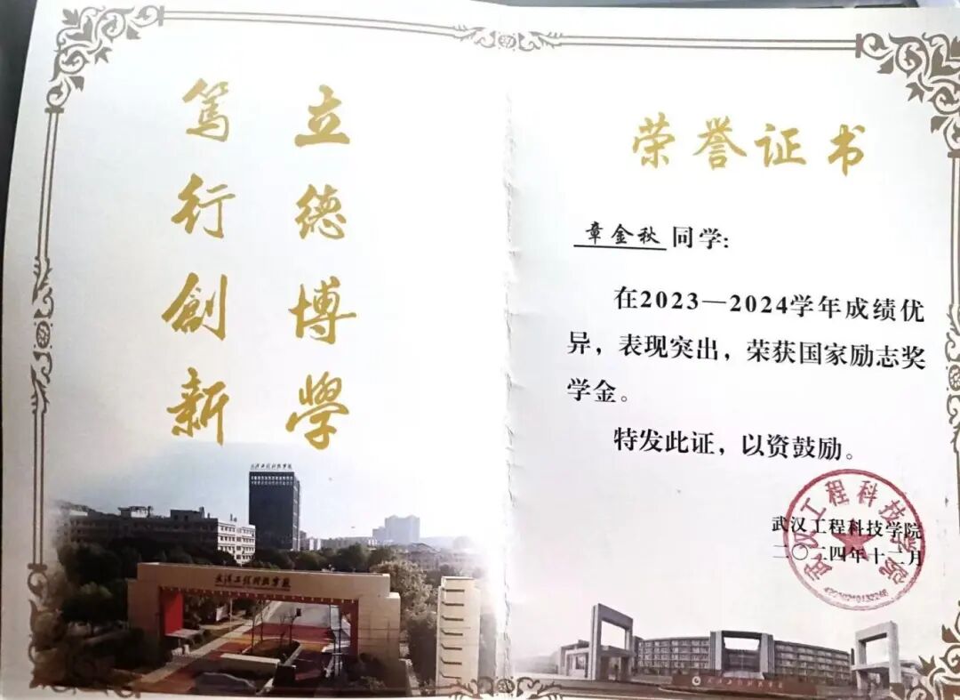 “拿到国家奖学金的那一刻,没有预想中的狂喜,更多是一种尘埃落定的踏实感。这份荣誉既是对过去一年全力以赴的肯定,更是对未来继续深耕的鞭策。”2023级汉语言文学专业的章金秋语气平静而坚定,眼中闪烁着对过往付出的笃定与对未来的憧憬。