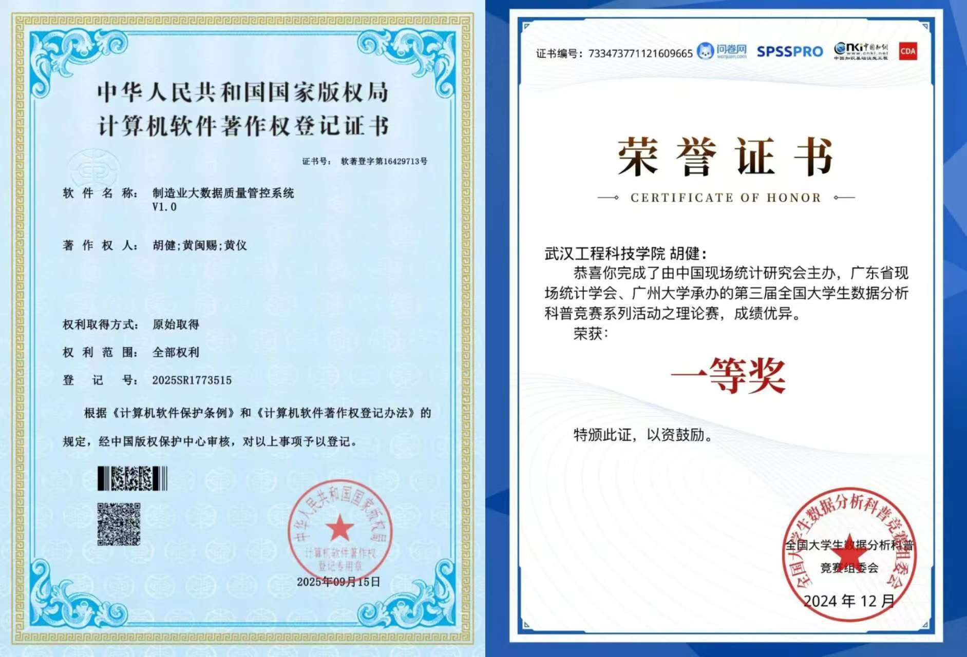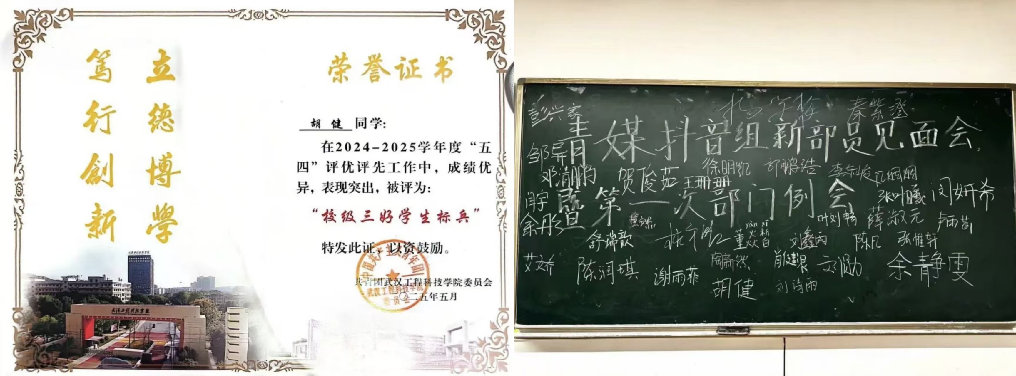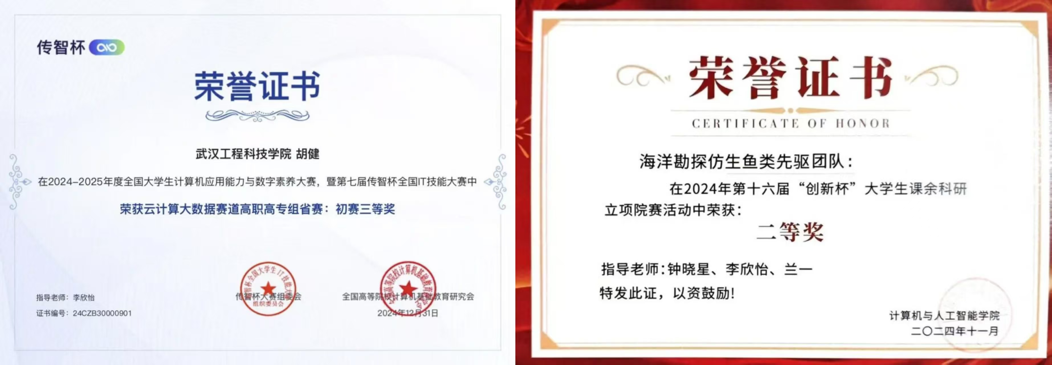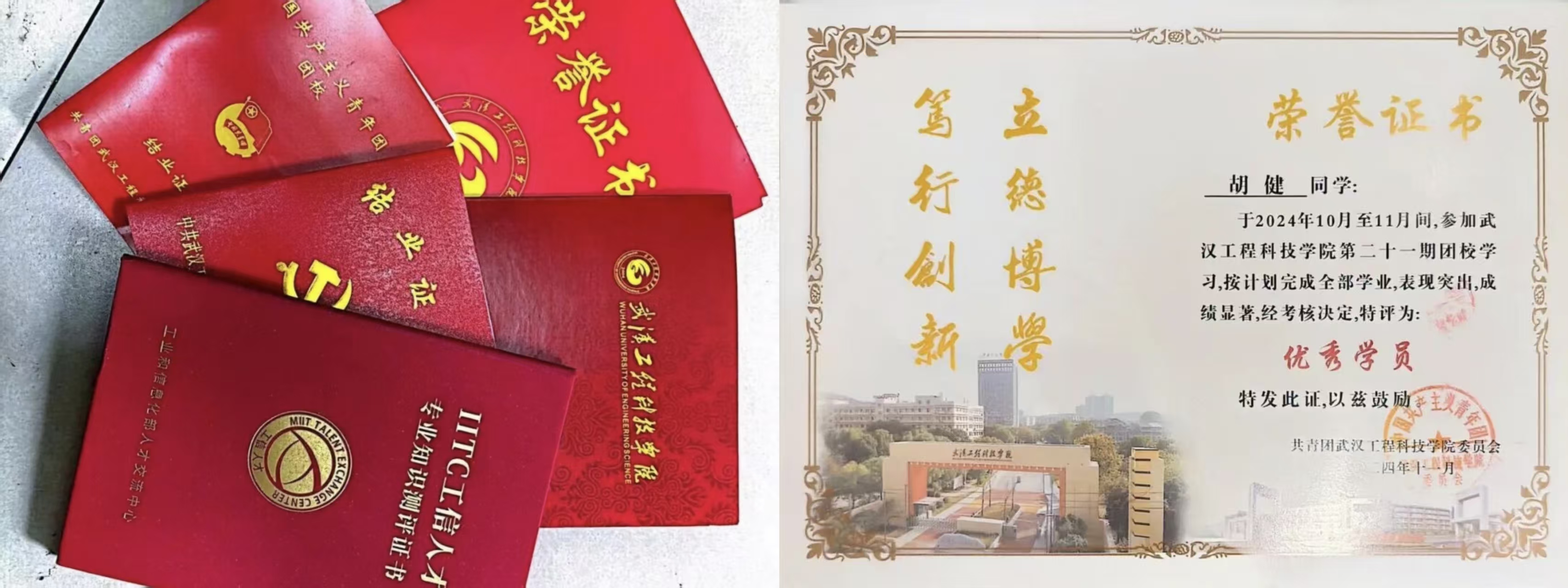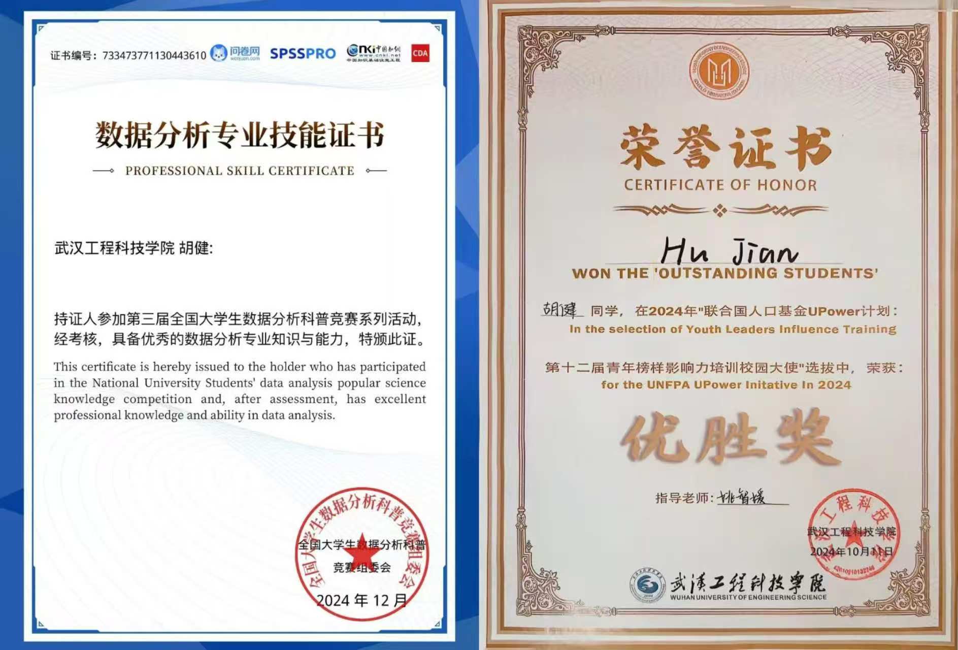 少年当有凌云志,万里长空竞风流。自从步入大学以来,胡健心怀理想,保持着对知识的渴求,不断追逐自己的梦想。无论是专业学习、社会实践还是科研竞赛,他都拿出最高昂的斗志与激情去对待,每一次都全力以赴。他的成绩排名与综测均保持班级第一,先后斩获EduHacks国际大学生创客马拉松大赛国家级二等奖、校级三好学生标兵、第十七届“华中杯”大学生数学建模挑战赛国家级二等奖、湖北省第十五届“挑战杯”大学生课外学术科技作品竞赛省级三等奖、中国大学生计算机设计大赛国家级三等奖等荣誉。他坚定理想,以行动为舟楫,驶向梦想的彼岸。追光的人,注定光芒万丈。