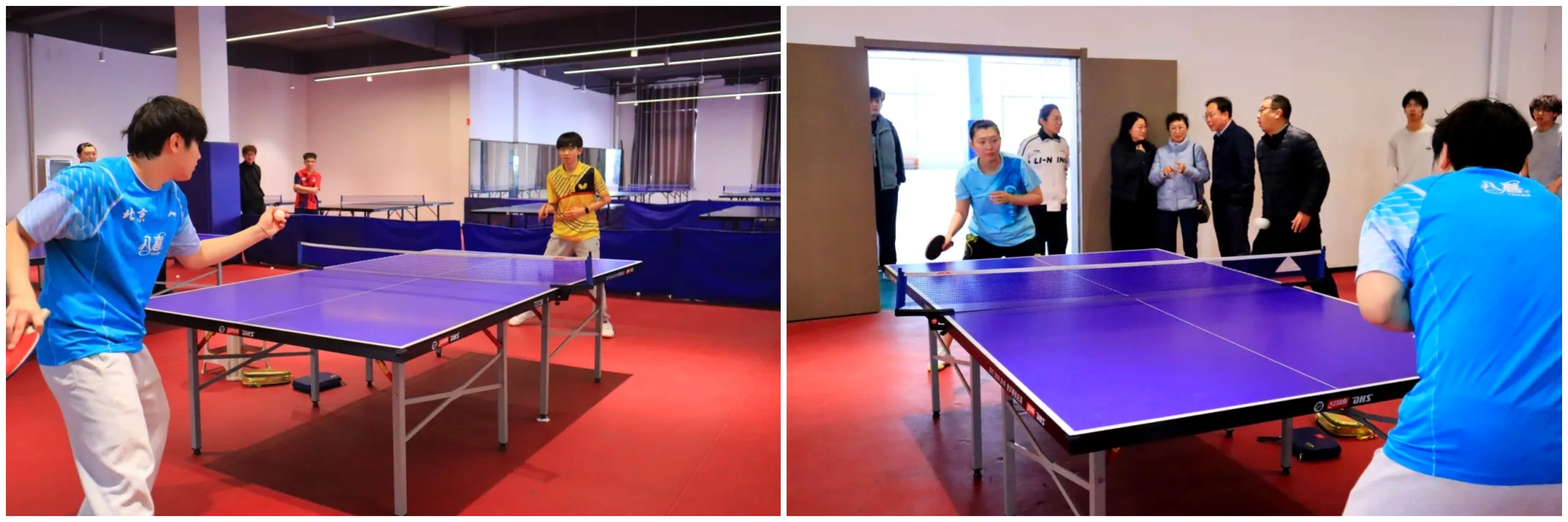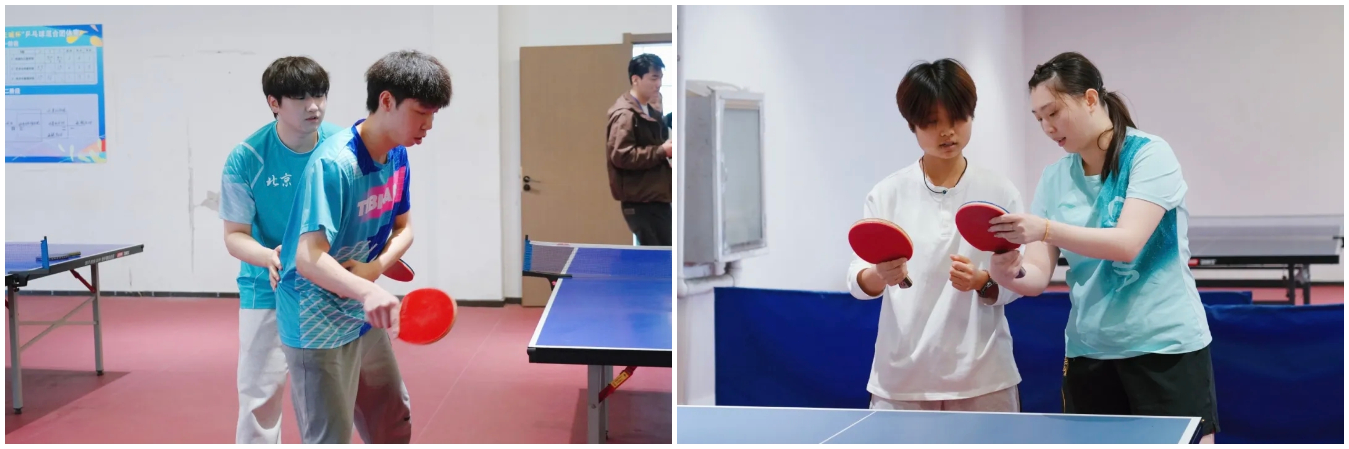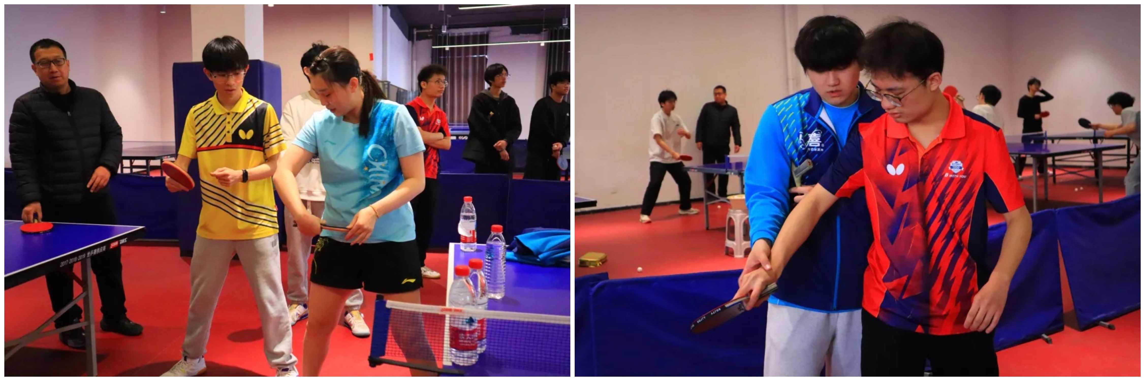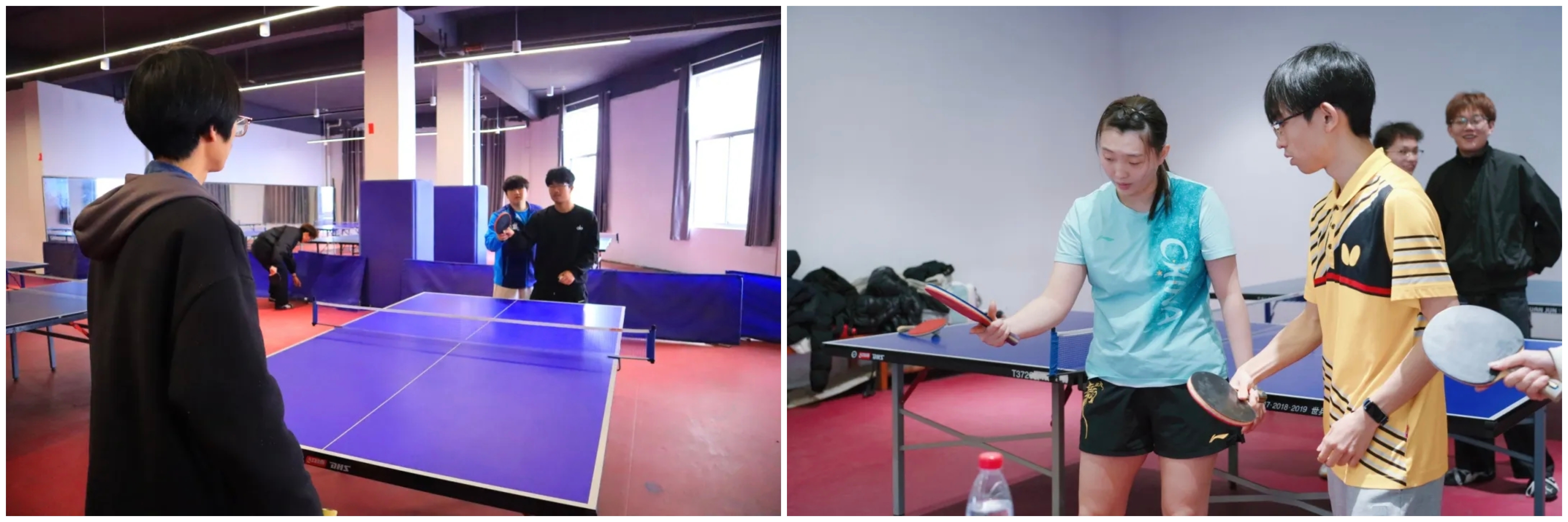 下午三点,两位运动员的到来瞬间点燃了现场师生的热情。在简短的交流后,郭雨涵和吴润泽与我校2024级体育系乒乓球专项班的同学们进行了基础的对拉练习。尽管只是简单的热身,但两位职业运动员精准的控制和潇洒的动作,依然让在场观战的同学们大呼过瘾,近距离感受到了顶级运动员的专业风采。