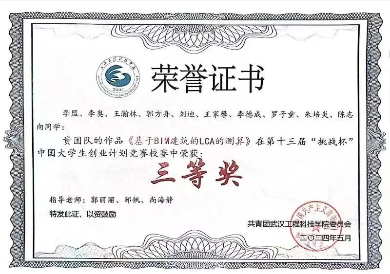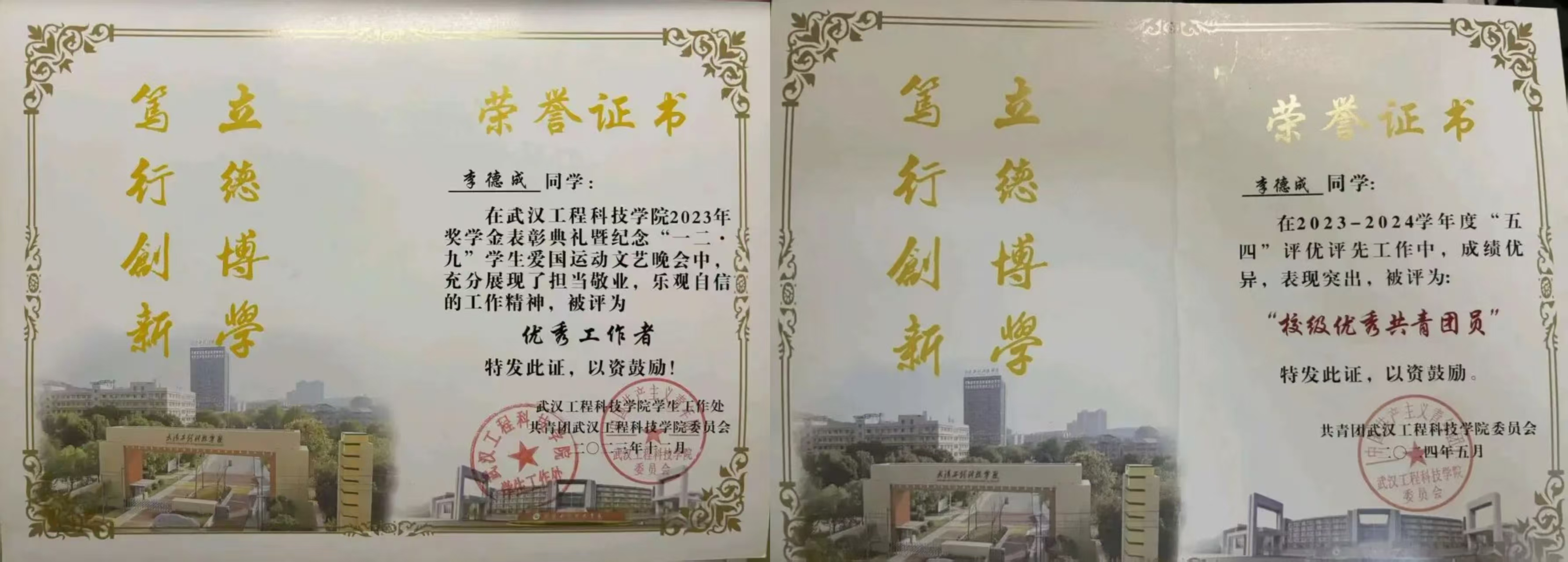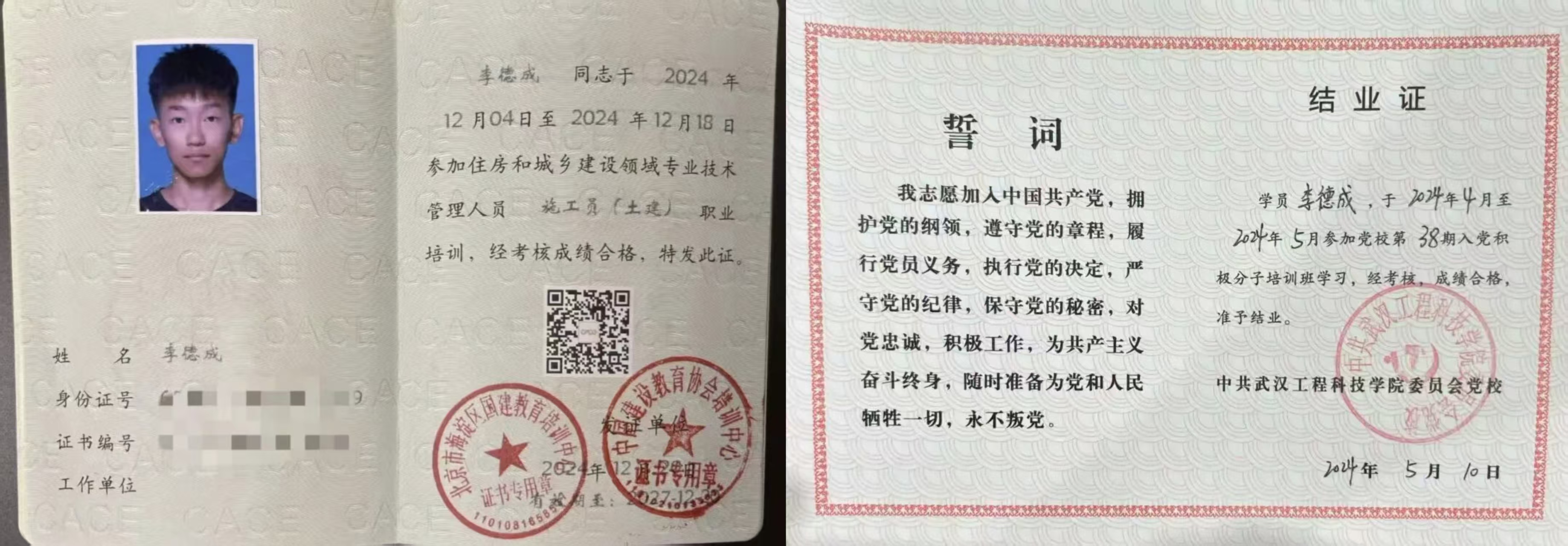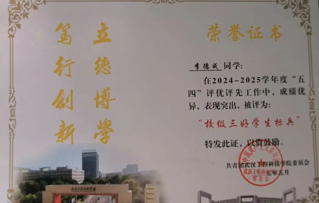 千淘万漉虽辛苦,吹尽狂沙始到金。李德成始终保持着对知识的渴望与对目标的执着追求,积极投身各类竞赛与科研实践,发表学术论文。在不懈坚持与奋力拼搏下,他成功收获了人生路上闪闪发光的“金子”:成功发表期刊论文《BIM技术在建筑施工进度管理中的应用》;斩获第十五届“挑战杯”大学生课外学术科技作品竞赛校级三等奖;获评“五四”评优评先“校级三好学生标兵”;拿下中国国际大学生创新大赛省级铜奖。从论文发表到竞赛获奖,每一次突破都是他在科研道路上“锲而不舍”的生动证明。奋斗与坚持,从来都是青春最靓丽的底色,他用努力为自己的人生添上了浓墨重彩的一笔。