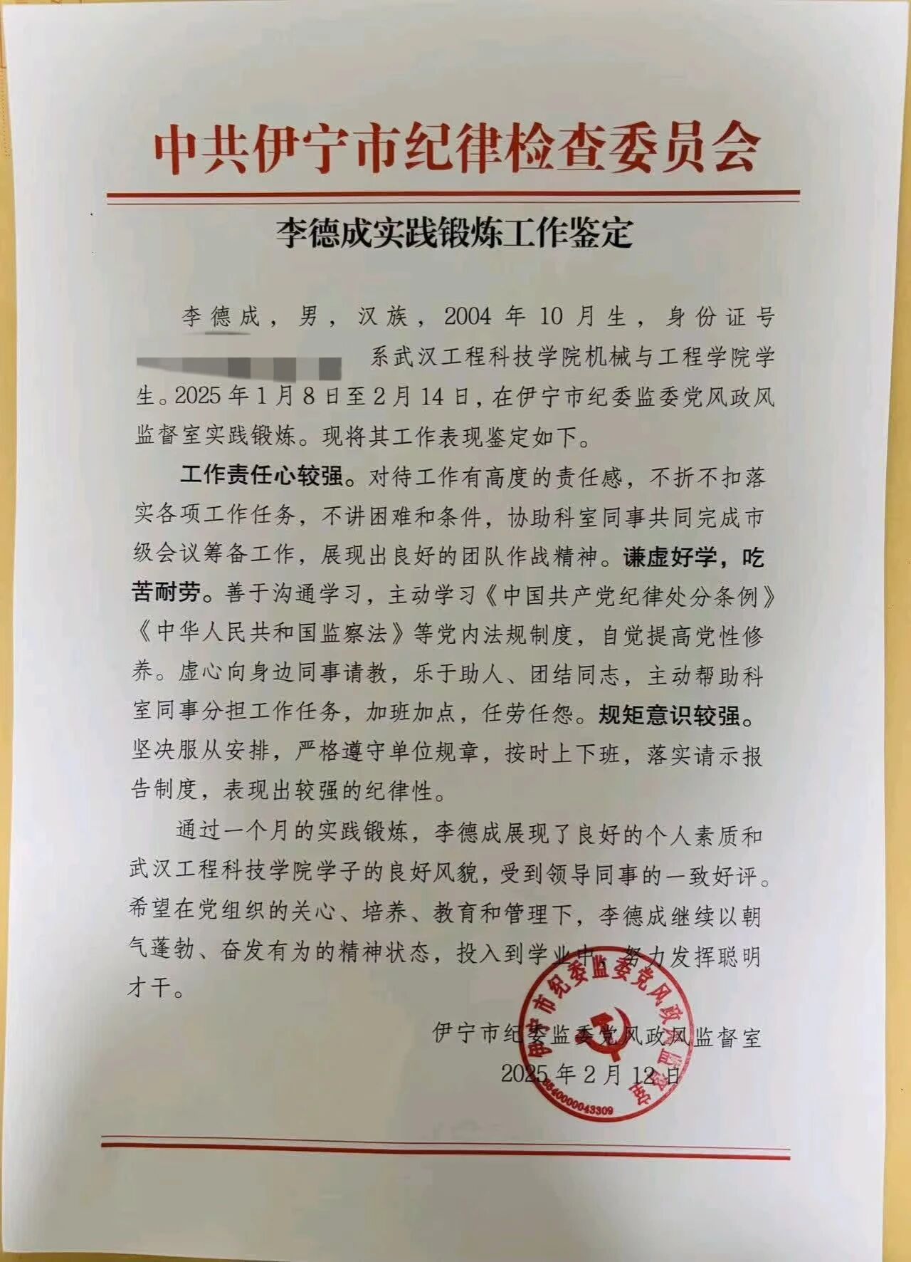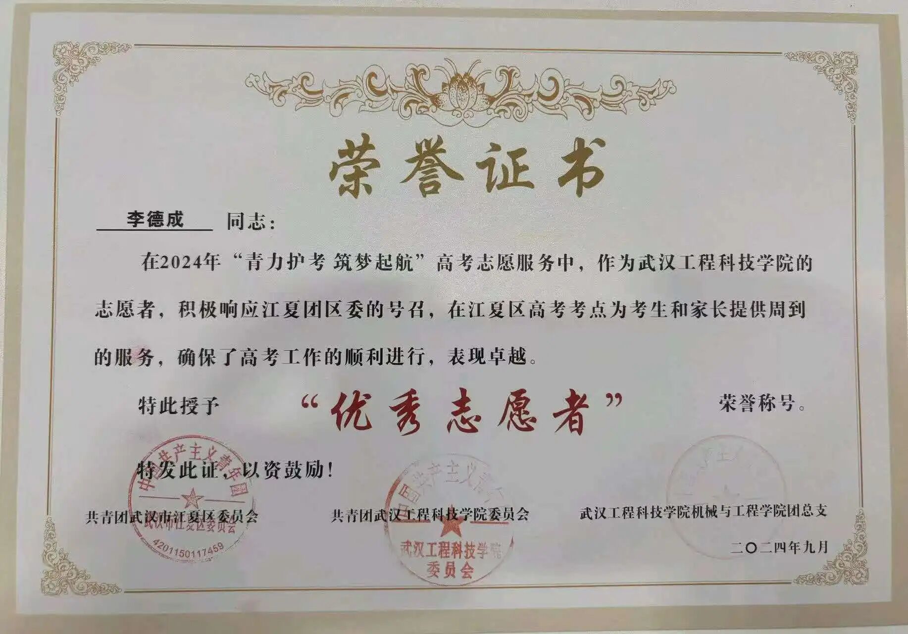 不忘初心、牢记使命。作为青年学子,李德成始终铭记全心全意为人民服务的宗旨,积极参与各类社会实践与志愿服务活动:从校园清扫、助力高考,到520“党建+”志愿服务,每一次实践都让初心落地生根。“让我印象最深的是助力高考活动。看到考生们怀揣梦想奔赴考场的坚定背影,我深切感受到,他们从来都不是一个人在战斗。何其幸运,能成为他们坚实的后盾。这次志愿服务,不仅让我见证了青春的拼搏与成长,更让我深刻理解了责任与担当的意义。”李德成动容地说道。
