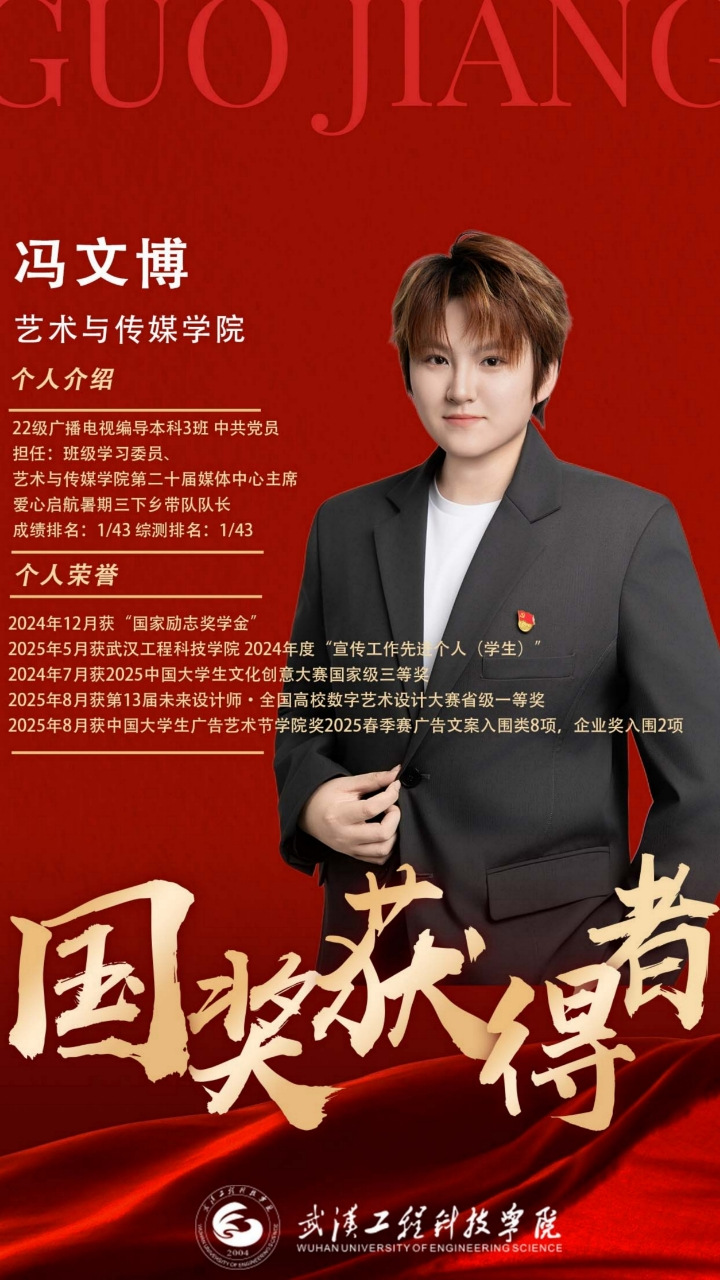 在得知自己获得国家奖学金那一刻,2022级广播电视编导专业的冯文博说:“获得国家奖学金,我满心感恩,沉淀出求学感悟:青春如风雨中向上生长的山笋,在困境中积蓄力量。感恩提灯的师长亲友解我困惑,感恩同行的伙伴予我温暖。这份荣誉不是终点,而是照亮前路、奔赴新征程的起点。”