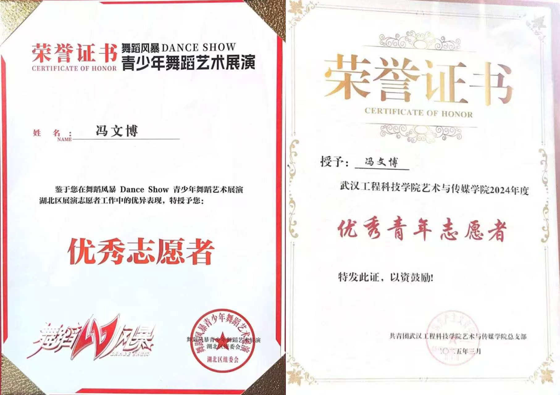 以爱为伴,以坚守磨意志。4次暑期三下乡、累计志愿时长超700小时、6项志愿者荣誉、三下乡优秀团队二、三等奖各1次……志愿服务早已成为学长青春里的重要底色。从地铁站的爱心托举,到湖北省舞蹈风暴的幕后坚守,从江夏区邻里文化节的温暖联结,到各类重点活动的默默付出,每一段经历都让他收获颇丰。在舞蹈风暴幕后保障中,他从凌晨4点坚守到傍晚,身心的疲惫化作意志的淬炼,也让他对“奉献”有了更为真切的理解。