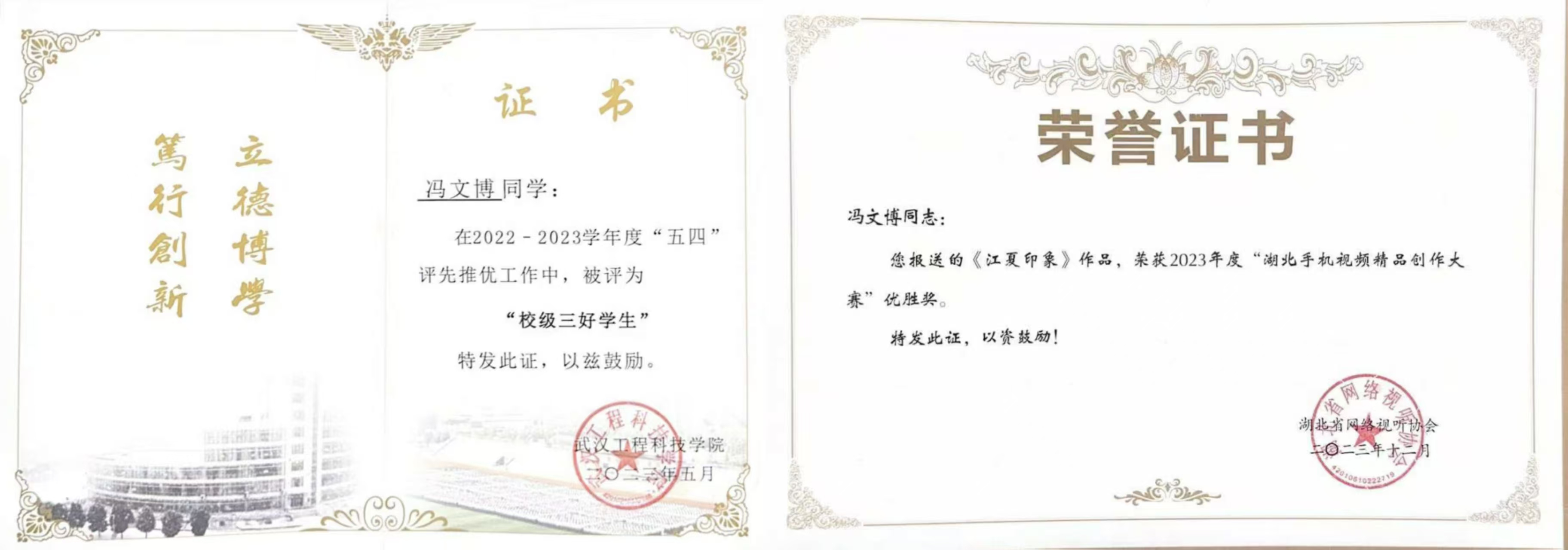 在学业与竞赛的道路上,冯文博始终以“争之必然、得之坦然、失之淡然、顺其自然”为准则。作为广播电视编导专业学生,他既深耕专业技能,在课后实践中发散思维、追求极致,又带着对学问的敬畏投身竞赛,跟随老师和团队打磨作品,“先不求好结果,但求好过程”。从各类专业竞赛的获奖荣誉,到实践作品的不断精进,这份对过程的笃定与对不完美的接纳,让他在每一次历练中积累成长力量,也让努力终成勋章。