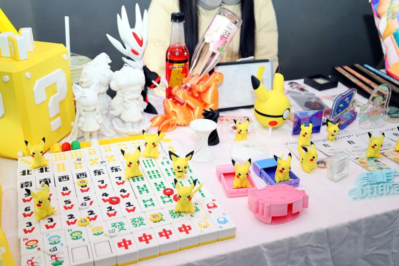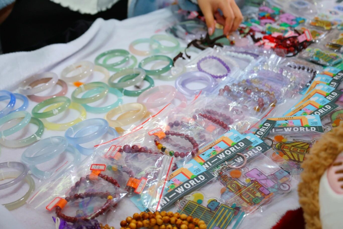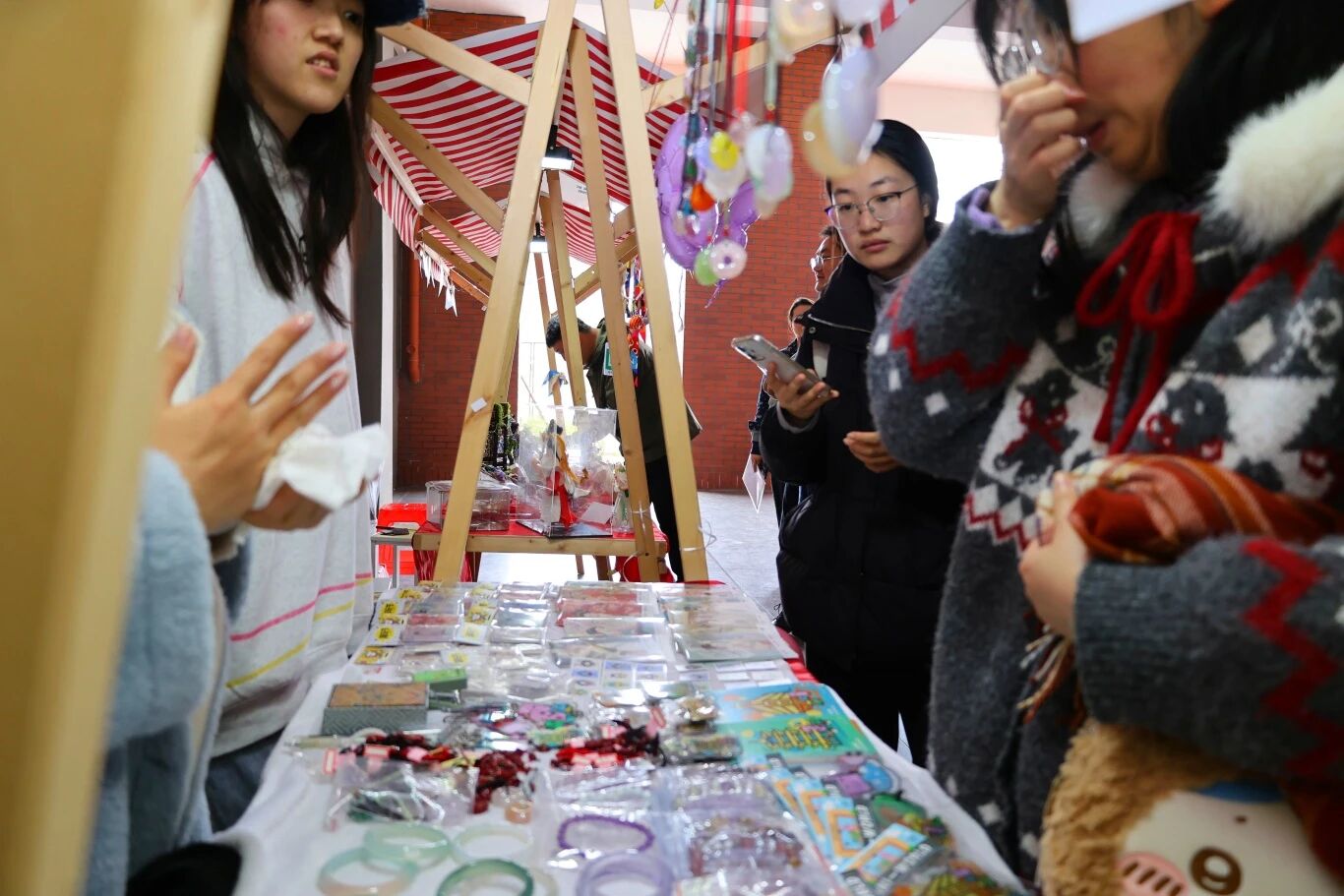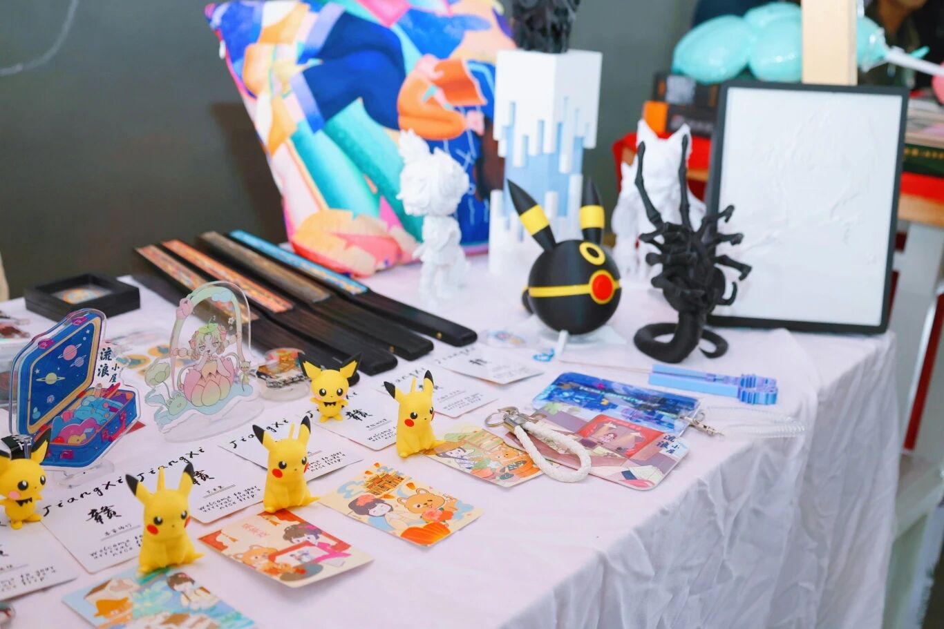 签约仪式后,与会领导与嘉宾共同参观了文创潮玩周摊位展览。本次展览作品丰富多元,涵盖地域特色文创、原创手作、轻珠宝配饰、趣味周边四大类别,充分展现青年学子的创意与巧思。在创意手办摊位前,2023级视觉传达设计专业学生李林介绍道:“本次展品均为个人制作,筹备了多款热门角色系列,同时面向师生提供专属定制服务。”