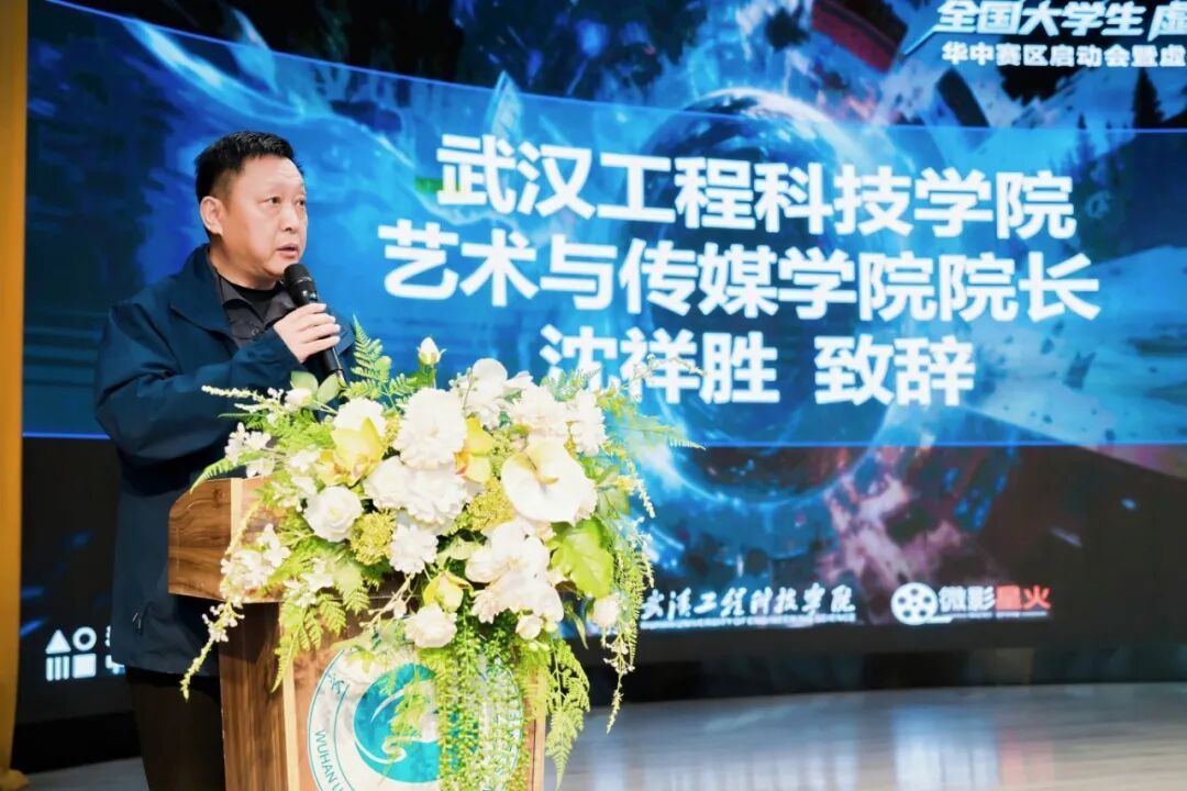 艺术与传媒学院院长沈祥胜在致辞中表示,虚拟制作技术正深刻重塑数字创意产业的内容生产模式,VPC大赛为青年学子搭建了探索前沿技术、展示创新才华的重要平台。作为承办单位,学校始终坚持应用型、创新型人才培养,通过深化产教融合、推进“以赛促学、以赛促教、以赛促创”,取得了丰硕的育人成果。他希望以本次启动会为契机,共探虚拟制作赋能艺术教育的新路径,推动区域内虚拟制作教学的协同创新,并祝愿华中赛区赛事圆满成功。