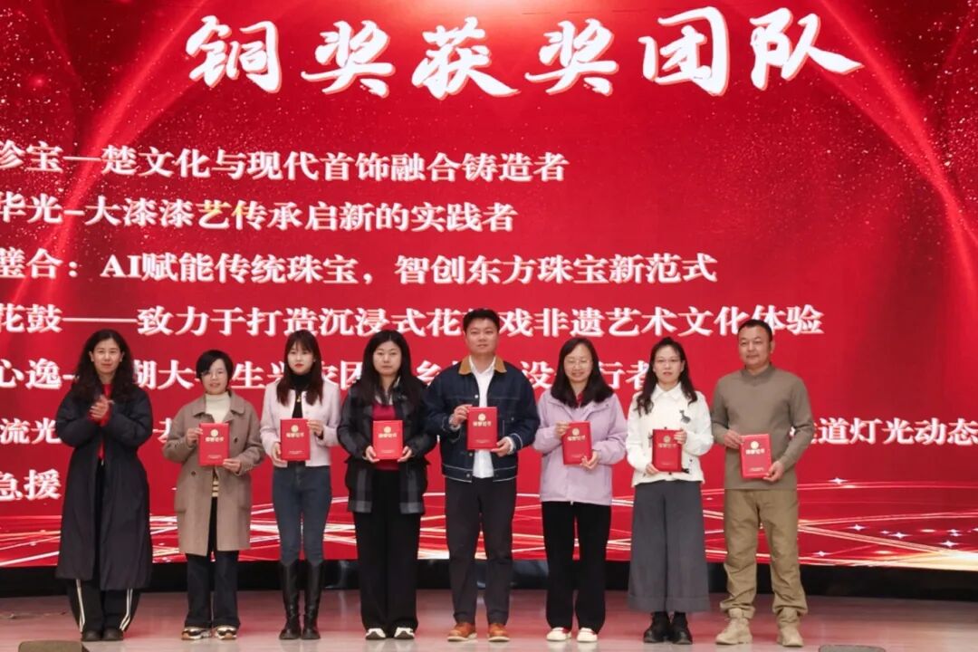 党委副书记、副校长廖璐莎为省赛铜奖获奖团队颁奖。