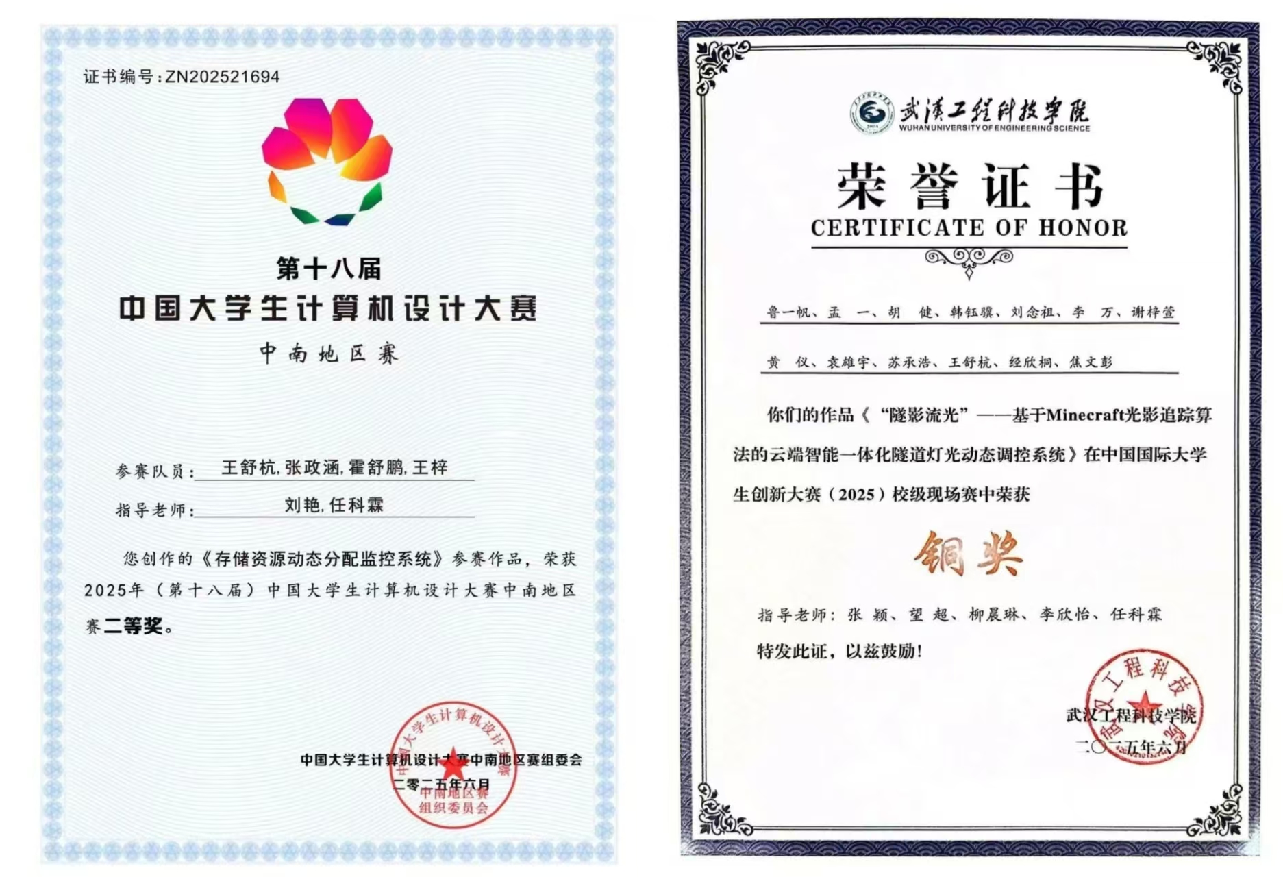 守愚藏拙,厚积薄发。自入学以来,王舒杭始终以“知命不惧,日日自新”为座右铭,在反思中进步,在磨砺中成长。学习上,她坚持“目标导向、高效生根”的理念,细化专业知识、专注课堂听讲、及时课后复习,并积极参与科研项目与学科竞赛,以实践丰富理论。她在各类比赛中屡获佳绩:2025年6月,获第18届中国大学生计算机设计大赛中南地区赛二等奖;2025年7月,获第15届“挑战杯”大学生课外学术科技作品竞赛三等奖;2025年8月,获第三届中国大学生计算机设计大赛全国三等奖;同月,在石首市“爱心托管班”志愿服务中获“优秀志愿者”称号;2025年9月,获第四届“创祎杯”全国大学生创新创业大赛金奖。从初次参赛时的胆怯紧张,到再次上场时的从容沉稳,她通过比赛锻炼了胆量、提升了能力,也结识了许多优秀学长学姐,并立志成为同样出色的人。