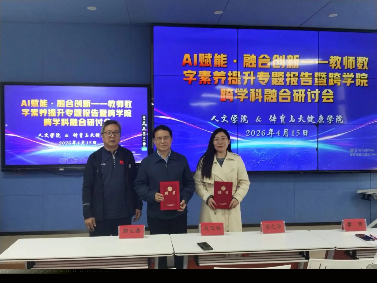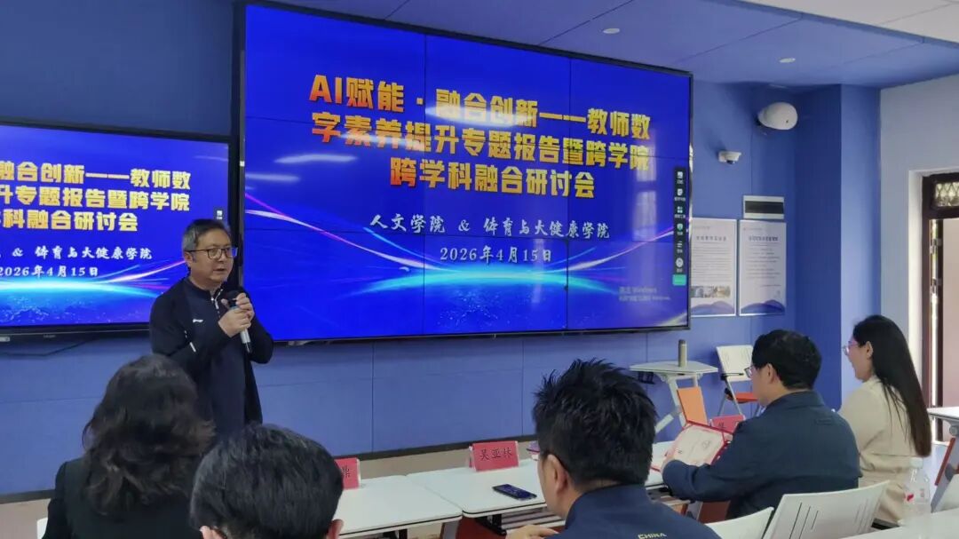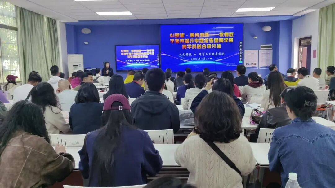 为积极应对人工智能技术对教育形态的深刻重塑,推动教师数字素养提升与跨学科融合创新,4月15日下午,武汉工程科技学院在1-104教室举办“AI赋能·融合创新——教师数字素养提升专题报告暨跨学院跨学科融合研讨会”。人文学院、体育与大健康学院和计算机与人工智能学院领导、系主任及专业教师参加研讨。会议由人文学院副院长吴海燕主持。
