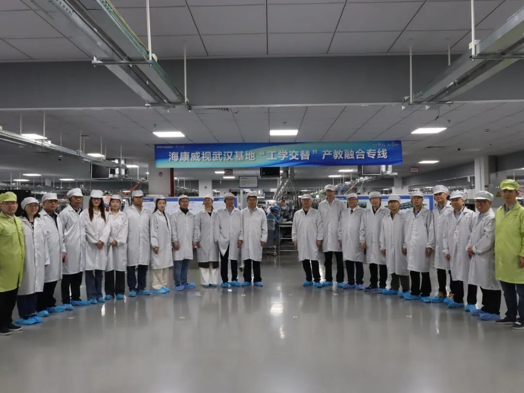 大会伊始,参会人员有序签到入场,在海康威视工作人员的引导下,开启了工学交替产教融合专线参观。一行人先后走进海康威视武汉基地的生产车间、研发中心及实训场地,近距离观摩了智能设备研发、生产流程管控、实操技能训练等场景,详细了解了企业在技术创新、人才培养、岗位需求等方面的核心优势,直观感受了海康威视“以产业需求为导向,以实践能力为核心”的产教融合理念,为后续深化校企合作、推进工学交替项目落地奠定了直观认知基础。