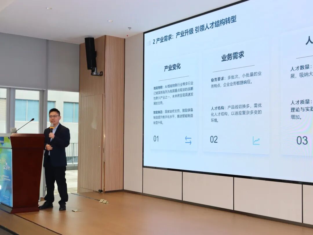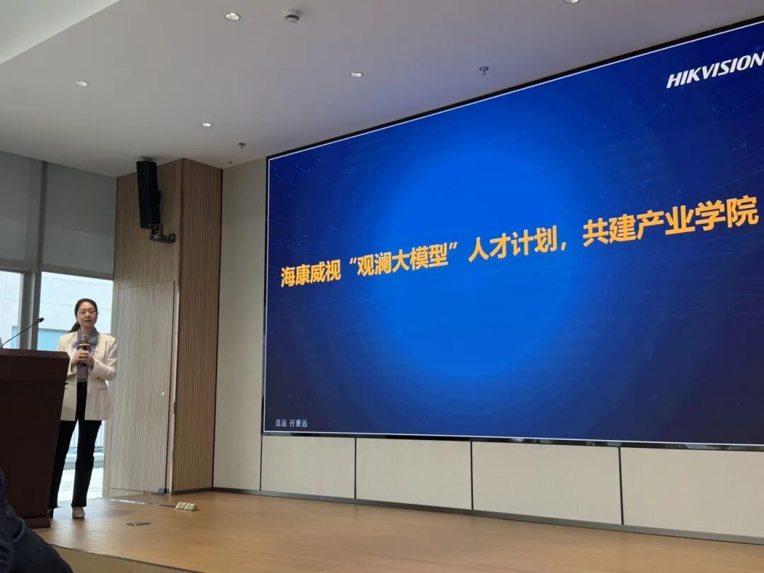 随后,海康威视相关负责人围绕企业产教融合战略布局、工学交替项目实施经验、人才需求导向等内容作专题分享,详细解读了海康威视在“星火班”订单培养、教师工作站建设、企业工作室共建等方面的实践成果,明确了未来与各院校深化合作的重点方向,为后续工学交替项目的推进提供了清晰指引。