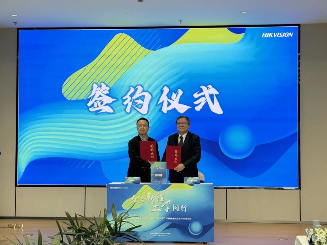 交流结束后,海康威视正式发布2026年工学交替项目,详细介绍了项目的培养目标、课程设置、实践安排、就业保障等内容,明确了与各合作院校的合作方向与具体举措,为校企协同开展人才培养提供了清晰的实施方案。在全场嘉宾的见证下,校长储祖旺代表学校与海康威视武汉基地签订了工学交替产教融合校企合作协议,标志着双方在协同育人、工学交替、资源共享等方面的合作进入新阶段,将进一步推动学校人才培养与企业岗位需求精准对接,助力学生实现“学业-就业-职业”的顺畅过渡。