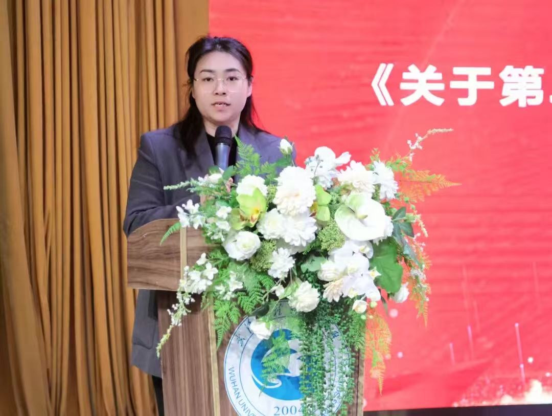学生代表徐娇阳发言,她回顾了“江城之春”陪伴学子成长的点滴,号召全体同学勇敢走出舒适圈,积极参与各项活动,以求真务实的态度探索创新,以文明有序的风貌展现武工院学子的青春风采,并预祝本届科技文化节圆满成功。