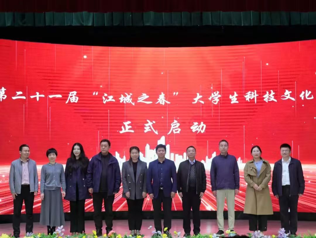 校团委书记张瑾宣读《第二十一届“江城之春”大学生科技文化节实施方案》。本届文化节由校团委主办、各二级学院团总支及学生组织协办,贯穿整个学期,围绕六大领域,统筹开展200余场特色活动,涵盖理论学习、学科竞赛、志愿服务、文艺体育、技能提升等多个维度,全面覆盖学生成长需求,落实“活动赋能、育人落地”的工作理念。
