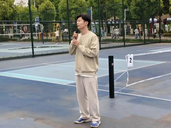 伴着全场热切的期盼,体育与大健康学院副院长郭生鼎登台,为本次赛事致开幕辞并正式宣布开赛。随着铿锵有力的开幕宣告响彻现场,掌声与欢呼声此起彼伏、久久回荡,首届“江城杯”匹克球混合团体比赛正式拉开竞技帷幕,赛场瞬间燃起青春运动的蓬勃热潮。